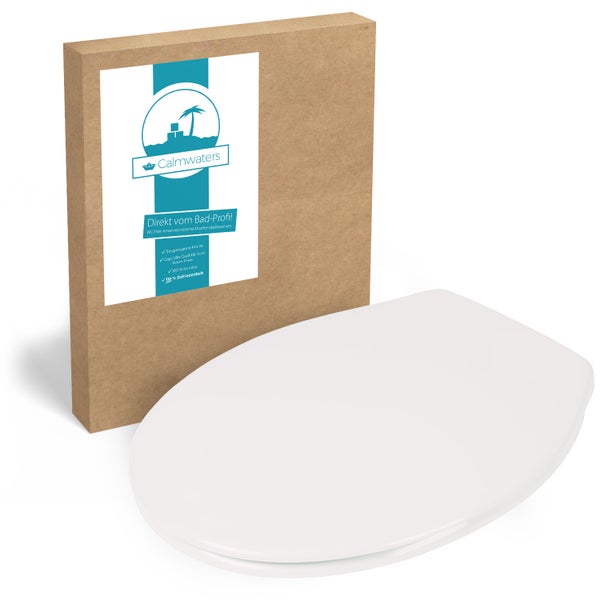 Produktvorteile ✅ WC-SITZ ESSENTIAL SOFT IN WEISS: • WC-Sitz in Weiß • Antibakterieller Duroplast • Deckel & Brille bis 150 kg geprüft belastbar • Schnell-Befestigung: Fast-Fix-System • Korrosionsbeständige Edelstahlscharniere • Ovale Standard-Form • Langlebig • Stabil • Antistatisch ✅ TOILETTENSITZ IN WEISS: Ideal fügt sich der weiße WC-Sitz Essential Soft in die Badgestaltung ein. Speziell zu Keramiken derselben Farbe passt der Sitz optimal. ✅ UNIVERSALE FORM: Der Sitz passt dank Standard O-Form auf handelsübliche Toiletten. Montieren Sie die WC-Brille mit der praktischen Fast-Fix-Befestigung im Nu auf der Keramik. Rostfreie Edelstahl-Scharniere sorgen für sicheren, wackelfreien Halt. Bitte prüfen Sie vorab anhand der Maße, ob der WC-Sitz für Ihr WC passt. ✅ ANTIBAKTERIELL & BIS 150 KG BELASTBAR: Der antibakterielle Duroplast sorgt für einen hohen Hygiene-Standard, ist robust sowie kratzfest und wirkt antistatisch gegen Staub. Zudem verfärbt das farbechte Material nicht. Klodeckel & Klobrille tragen jeweils mühelos 150 kg. ✅ 100 % SERVICE & ZUVERLÄSSIGKEIT ➨ Dieser Artikel genügt den höchsten Qualitätsansprüchen. Bei Rückfragen hilft Ihnen unser Kundenservice gerne weiter. Produktdetails Calmwaters® WC Sitz Essential Soft in Weiß