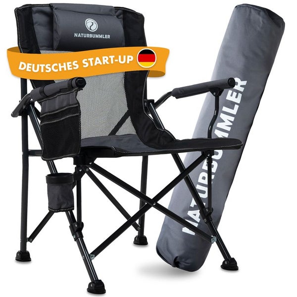 Campingstuhl bis 160kg belastbar - faltbar - eingebaute Taschen- gepolstert mit Sitzkissen