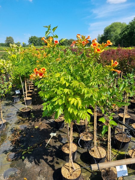 Campsis tagliabuana Indian Summer- Stämmchen, Trompetenblume Indian Summer, Höhe inklusive Topf: 120-130 cm