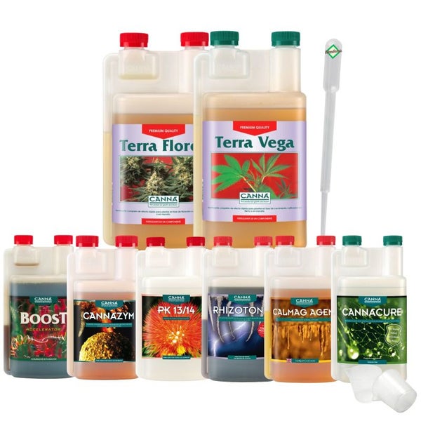 Das Canna 8-teilige Dünger Set enthält zusätzlich Cannazym, Cure und Calmag Agent (1L) – alles, was du brauchst, um deine Pflanzen optimal zu versorgen und ihre Gesundheit zu fördern. Hol dir das komplette Set und erlebe, wie deine Pflanzen zu einer üppigen, ertragreichen Ernte gedeihen!