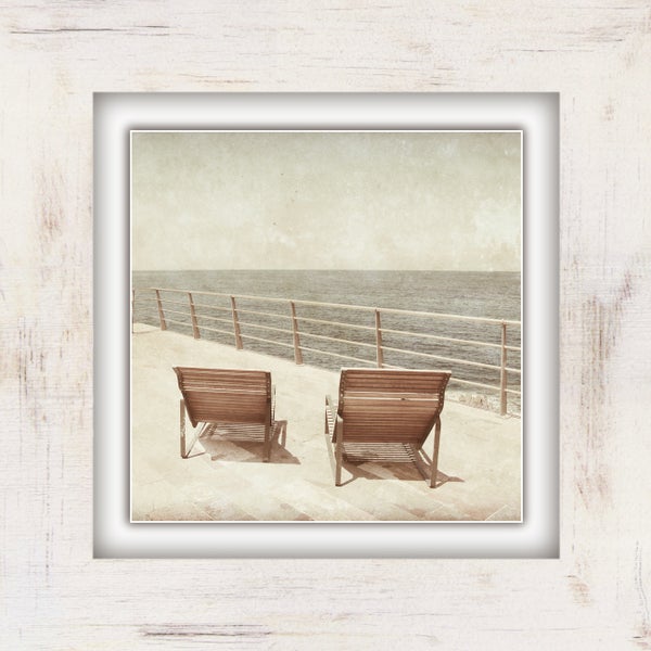 Canvas-Gemälde | Leinwandbild Strand | Liegestühle | Sand | Kunstdruck | gedruckt und per Hand bespannt CCS00288 Format: 40x40cm