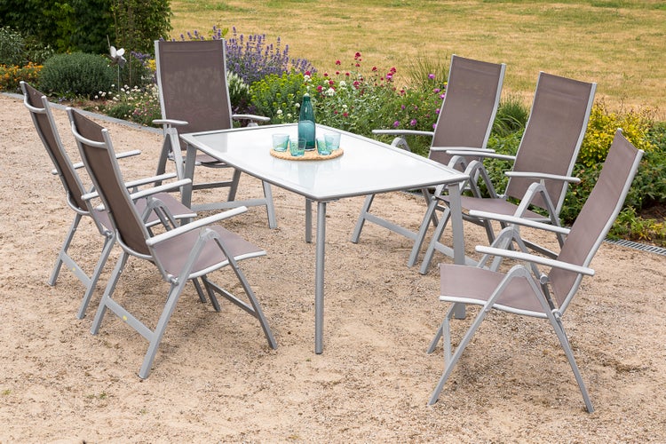 Carrara Gartenmöbelset 7tlg., 6 Klappsessel, Tisch 150 x 90 cm, taupe