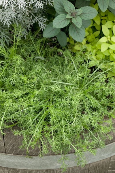 Chamaemelum nobile ‘Treneague’, die römische Kamille ‘Treneague’, ist eine besondere, flach kriechende Polsterstaude, die als duftender Rasenersatz und robuster Bodendecker überzeugt. Die Sorte bleibt in der Regel ohne Blüte und konzentriert sich auf dichtes, frischgrünes, fein gefiedertes Laub, das beim Berühren einen angenehmen, apfelartigen Duft verströmt. Mit teppichbildendem Wuchs und einer Höhe von etwa 5 bis 10 cm schließt sie zügig Lücken, wirkt ganzjährig dekorativ und hält leichten Tritt gut aus. Im Garten entfaltet diese Kräuterstaude ihre Stärken zwischen Trittsteinen, im Steingarten, Kiesgarten oder an sonnigen Wegrändern ebenso wie im Vorgarten und auf flachen Beeten. Auch in Schalen, Trögen und flachen Kübeln auf der Terrasse lässt sich die kompakte, immergrüne Polsterpflanze als pflegeleichte Alternative zu Rasenflächen einsetzen, wo regelmäßiges Mähen entfallen kann. Ein sonniger bis halbschattiger Standort fördert den dichten Wuchs; der Boden sollte durchlässig, eher mager bis mäßig nährstoffreich und sandig bis leicht lehmig sein, da Staunässe schlecht vertragen wird. Nach dem Anwachsen kommt die Pflanze mit Trockenphasen gut zurecht, gleichmäßige, maßvolle Wassergaben bleiben dennoch vorteilhaft. Ein leichter Rückschnitt nach dem Winter oder nach starkem Tritt kompaktisiert das Polster und erneuert die Oberfläche. In Gruppenpflanzung entstehen schnell geschlossene Teppiche, die Unkraut unterdrücken und als grüne, weiche Fläche einen natürlichen, mediterranen Charakter in Gartenräume bringen.