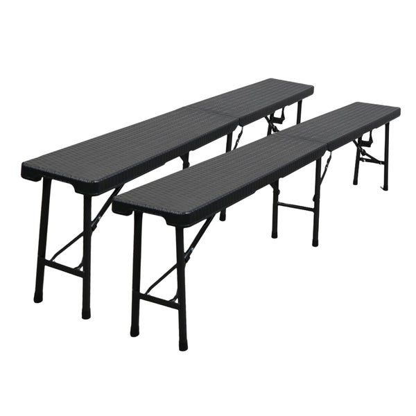 CHEFGASTRO 2er Set Bierbank klappbar Klappbank Outdoor wetterfest mit Tragegriff Campingbank faltbar 8 Personen Kunststoff Rattan Optik Schwarz