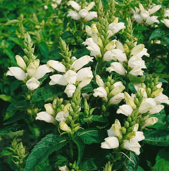 Chelone obliqua 'Alba', Schildblume, weiß, ca. 9x9 cm Topf