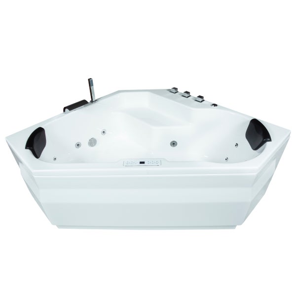 Dank der Leichtbauweise ist der Whirlpool Capri perfekt für den Innenbereich geeignet. Seine Rückenschrägen und die gepolsterten Kopfstützen sorgen für eine komfortable Sitzposition. Die dreieckige Raumsparwanne ist mit 24 leistungsstarken Massagedüsen ausgestattet, welche sich in 6 Seitendüsen, 12 Bodendüsen, 4 Rückendüsen und 2 Fußdüsen aufteilen.