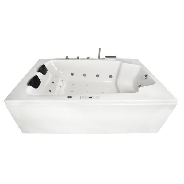 Dank der Leichtbauweise ist der Whirlpool XXL Milos perfekt für den Innenbereich geeignet. Seine Rückenschrägen und die gepolsterten Kopfstützen sorgen für eine komfortable Sitzposition. Die rechteckige Doppelwanne ist mit 28 leistungsstarken Massagedüsen ausgestattet, welche sich in 8 Seitendüsen, 12 Bodendüsen und 8 Rückendüsen aufteilen.