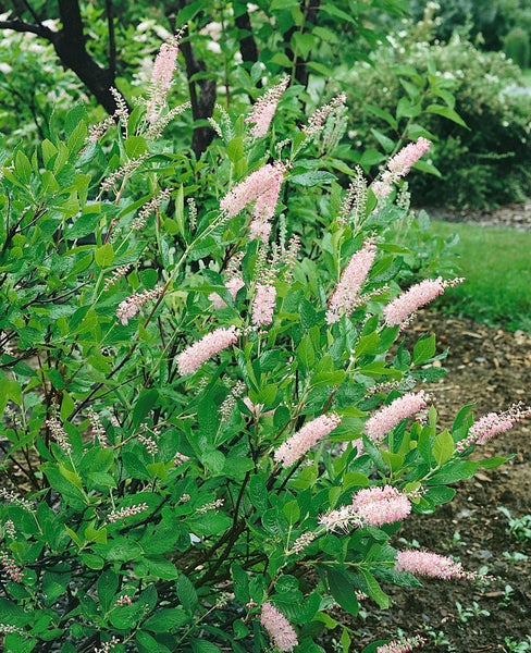 Clethra alnifolia 'Pink Spire', Scheineller, rosa Blüten, 40–60 cm