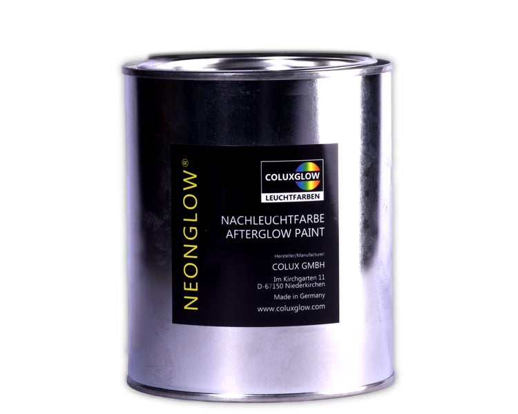 EinsatzgebietLeuchtschrift Graffiti mit Leuchtschriftfarbe für LED kurzzeitig nachtleuchtende Farbe.Die ColuxGlow Leuchtschrift Leuchtschriftfarbe intensiv kurzzeitig nachtleuchtende Farbe für LED Taschenlampe ist eine Alternative zu den anderen langnachleuchtende Farben.WAS KANN COLUXGLOW FARBE?ColuxGlow Leuchtschriftfarbe intensiv kurzzeitig nachtleuchtende Farbe ist eine Anstrichfarbe für Oberflächen aus Holz und vorgestrichene Oberflächen z.B. Wandflächen.KURZBESCHREIBUNGColuxGlow Leuchtschriftfarbe ist eine wasserbasierte kurznachleuchtende Acrylfarbe mit spezieller Kombination von Nachleuchtpigmenten die Lichtenergie für ein paar Minuten speichern und intensiv abgeben. Ein weißer Voranstrich wird empfohlen um eine gute Leuchtwirkung zu erzielen.ANWENDUNG■ Der Untergrund muß sauber und trocken sein – eine weiße Vorgrundierung erhöht deutlich die Leuchtwirkung, denn die Leuchtfarbe ist lichtdurchlässig.■ Je nach Anwendungstechnik insbesondere für das Sprühverfahren kann mit bis zu 10 % Menge demineralisiertem Wasser verdünnent werden. In diesem Fall auch während der Lackierung zwischendurch aufrühren um ein Absetzten der Pigmente zu vermeiden.■ Vor dem Abtrocknen des Anstrichs das eventuell verwendete Abklebeband entfernen damit beim Aushärten keine Filmkante entsteht.■ TIPP: Zum Streichen keine saugende Pinsel oder Farbrolle verwenden!HINWEISFarbe enthält ein Biozid gegen Fäulnis – Symbol: ACHTUNG