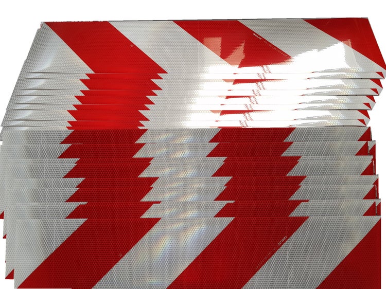 ORAFOL Container prismatische Warnmarkierungsfolie rot/weiß Klasse RA2/C als Klebefolie - 80 Bögen als Set für 10 Container (je Container werden 8 Folien benötigt)