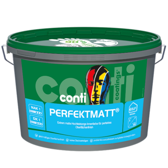 Conti® PerfektMatt – extrem matte Innenfarbe für streiflichtempfindliche Flächen. Deckkraftklasse 1, Nassabriebklasse 1, geruchsarm & umweltfreundlich.
