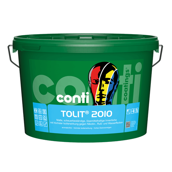 Conti® Tolit® 2010 Isolierfarbe für innen – Hohe Deckkraft, tuchmatt, isoliert zuverlässig Nikotin-, Ruß- und Wasserflecken. Ideal für anspruchsvolle Renovierungen.