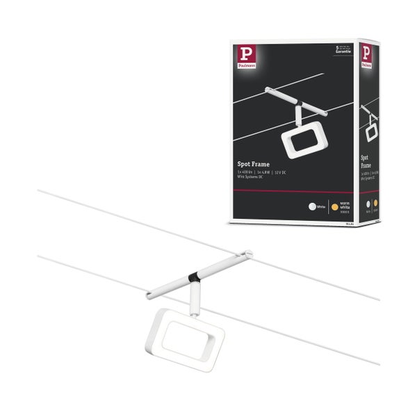Der Einzelspot Frame in Weiß matt#Chrom eignet sich besonders zur Ergänzung eines bestehenden Seilsystems. Das System kann sowohl an der Wand als auch an der Decke montiert werden und bietet dadurch grenzenlose Gestaltungsmöglichkeiten. Egal ob gerade, schräg oder verwinkelt - Seilsysteme passen in jeden Raum und sind die Problemlöser für schwierige Installationsbedingungen. Das Basisset lässt sich individuell durch Einzelspots, Umlenker und weiteres Zubehör ergänzen. Mit diesem System lässt sich eine optimale Lichtverteilung realisieren, bei steigendem Lichtbedarf lässt es sich problemlos erweitern. Für die Verteilung der Leuchten im gesamten Raum wird nur ein Stromauslass benötigt. Systeme mit der Technik 12V DC (Gleichspannung) lassen sich nicht über einen Wand-Einbaudimmer dimmen.