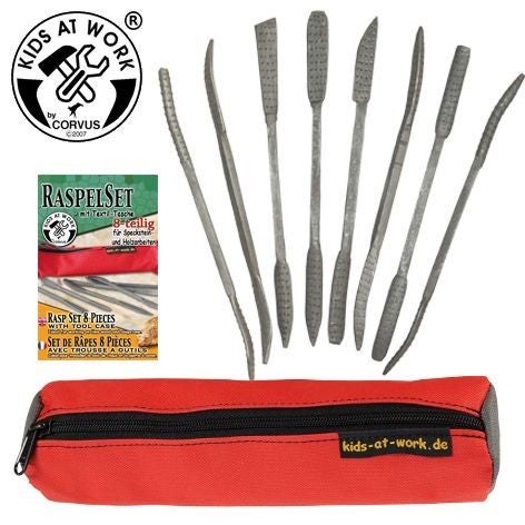 Corvus A600136 - Kids-at-Work, Raspelset mit Textil-Tasche, inklusive 8 Doppel-Raspeln