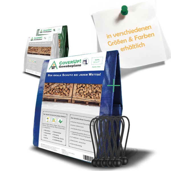 CoverUp! Abdeckplane Wasserdicht (2x3m), 200g/m² Gewebeplane mit ösen - Plane Wasserdicht mit Verstärkte Gummiecken - UV-Schutz für Gartenplane, Bodenplane, Bauplane inkl. 10 Planenspanner, Blau 2x3