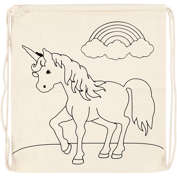 Creativ Company Kordelzug-Beutel, Einhörner, Größe 37x41 cm, 110 g, Hellnatur, 1 Stk