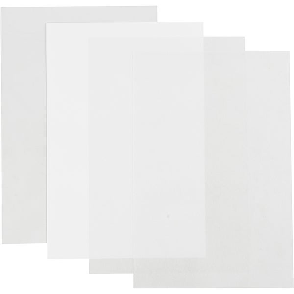 Creativ Company Schrumpffolienplatten Plastikschrumpfplatten, Glänzend transparent, Matt transparent, Mattweiß,, 20x30 cm, Dicke 0,3 mm, 4 Blatt