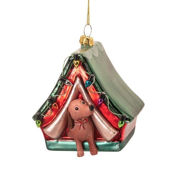 Verleihen Sie Ihrem Weihnachtsbaum mit dem Sass & Belle Dackel im Zelt Weihnachtskugel aus Glas eine gehörige Portion Humor und Charakter.