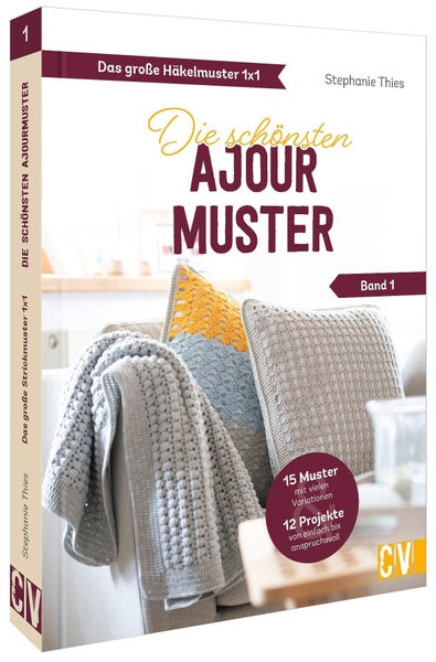 Attraktive Häkelprojekte vom Cardigan bis zur Kissenhülle, die die Vielseitigkeit des Ajourmusters spielerisch umsetzen und zum Nachhäkeln animieren.