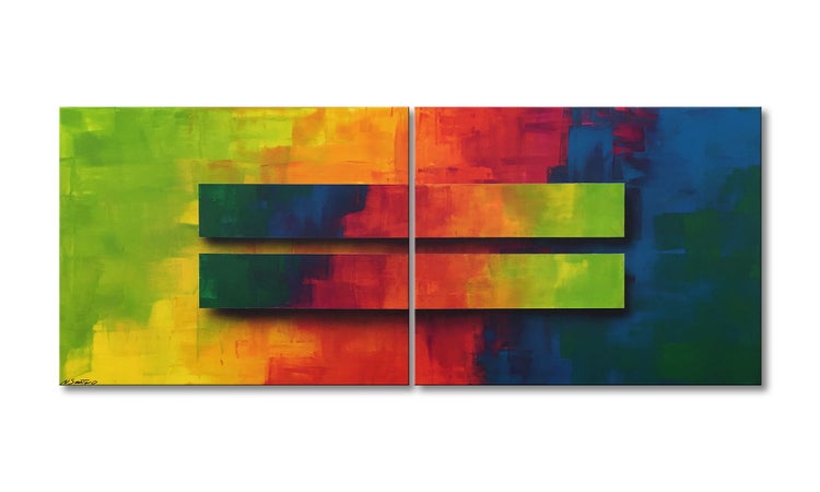 - Das moderne Bild Colored Boxes 200x80 cm ist ein handgemaltes Wandbild, kein Kunstdruck