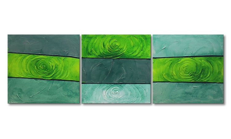 - TitelDas moderne Bild -Green Roses- 225x75x2 cm handgemaltes Unikat