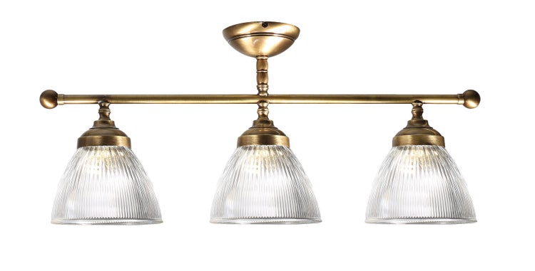 Deckenlampe Glas Messing 50 cm lang E27 in Bronze hell 3-flammig länglich Klassisch Deckenleuchte