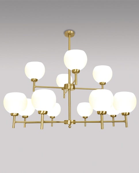 Eleganter Messing Kronleuchter mit Schirm aus satiniertem Glas