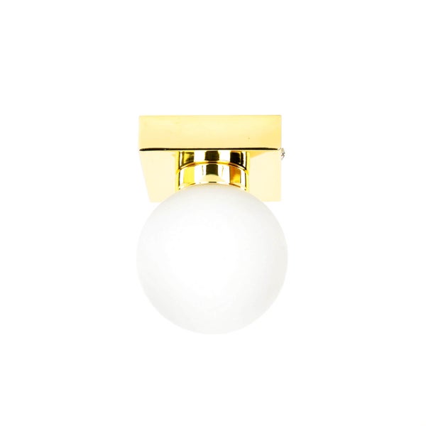 Elegante Deckenleuchte für das Badezimmer mit Glas Kugelschirm in Weiß und Gold