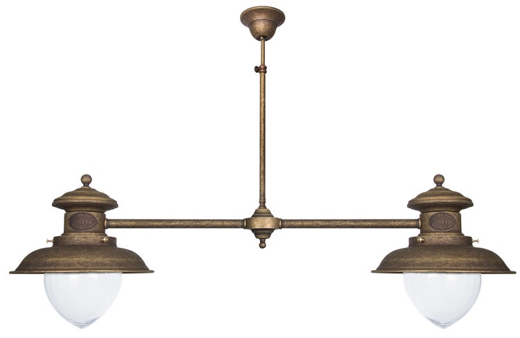Deckenlampe Messing Glas B: 106 cm 2-flammig E27 in Bronze Antik länglich Maritim Deckenleuchte