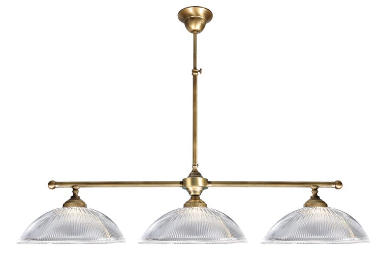 Deckenlampe Messing Riffelglas 94 cm lang H: max. 84 cm verstellbar in Bronze hell E27 3-flammig Jugendstil Deckenleuchte