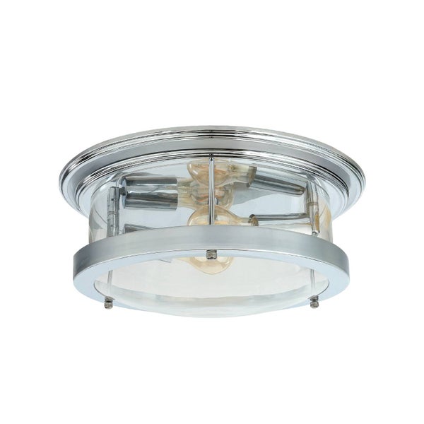 Deckenlampe Metall Glas E27 IP44 Ø 40 cm rund Chrom 2-flammig Klassisch Badezimmer