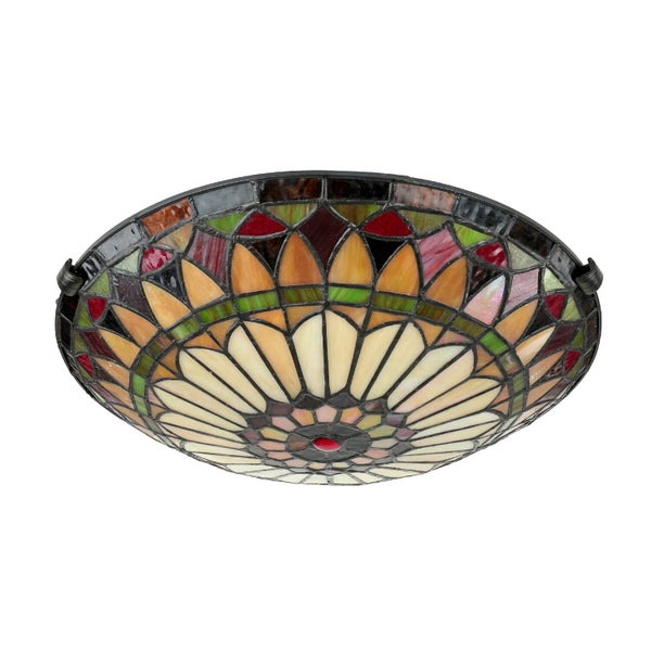 Deckenlampe rund Ø 42 cm Tiffany Stil Buntglas Metall Deckenleuchte für Flur Wohnzimmer