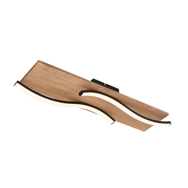 Auffälliges Wellenförmiges Design Diese Wohnzimmerleuchte zeichnet sich durch ihr wellenförmiges Design aus, das schwarzes Metall mit einer natürlichen Holzoptik kombiniert und perfekt zu Vintage- oder Retro-Stilen passt. Leistungsstarke Beleuchtung Mit zwei 10W LED-Platinen, die jeweils 960 Lumen liefern, bietet diese Schlafzimmerlampe eine Gesamtleistung von 1920 Lumen bei einer warmen Farbtemperatur von 3000K. Langlebige und Zuverlässige LEDs Die LEDs dieser Leuchte haben eine Lebensdauer von 20.000 Stunden und bieten eine hohe Farbwiedergabe mit einem Ra-Wert von mindestens 80, was für lebendige und natürliche Farben sorgt. Vielseitig Einsetzbar Dank ihrer Maße von 550x140x85 mm (LxBxH) ist diese Flurlampe ideal für verschiedene Räume wie Wohnzimmer, Küchen oder Flure geeignet. Einfache Montage Diese LED-Leuchte ist einfach zu installieren und eignet sich hervorragend für schnelle Renovierungen oder als stilvolles Update für Ihr Zuhause.