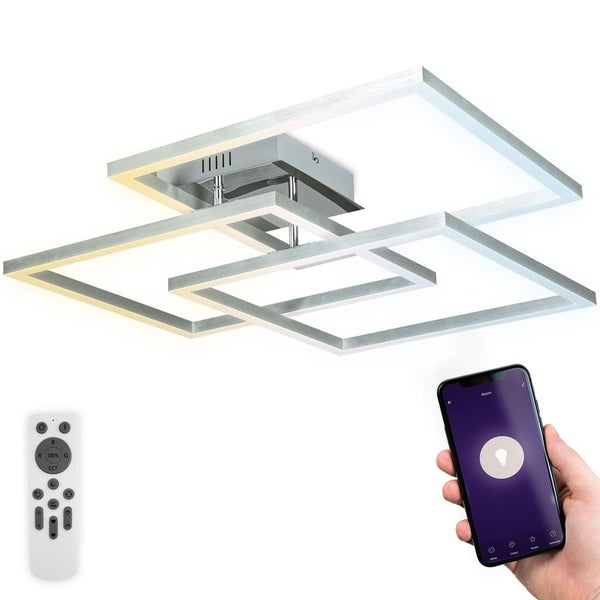 Deckenleuchte 69,5x69,5 cm - 48W, 4800lm, LED, smart, dimmbar, CCT, RGB, silberfarbig