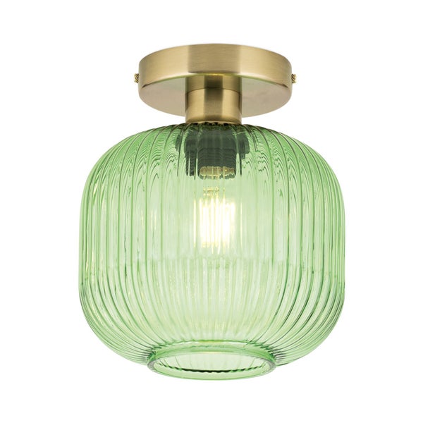 Bringen Sie nostalgischen Flair und stilvolle Lichtakzente in Ihr Zuhause mit der Deckenleuchte CARNEVAL. Der edle Glasschirm in den Farbvarianten Grün, Rauch, Amber oder Rot sorgt für eine atmosphärische Lichtwirkung und macht diese Leuchte zu einem echten Blickfang. Das Rillendekor des Schirms verleiht dem Design Tiefe und einen Hauch von Retro-Charakter.
