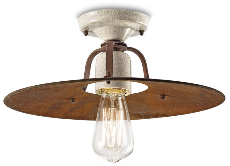Kleine Deckenleuchte aus Keramik und Metall im Industrial Design