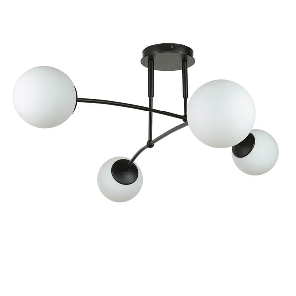 Deckenleuchte Kugel Schirm B: 92 cm Metall Glas Schwarz Weiß E14 4-flammig Deckenlampe