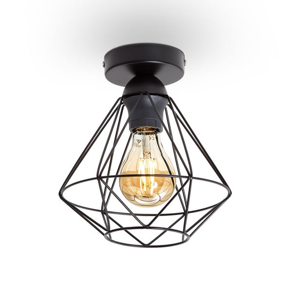 - Diese 1-flammige Draht Deckenlampe in schwarzem Metall lässt Ihr Wohnzimmer, Esszimmer und Esstisch, Flur und Diele in einem trendigen Vintage, Retro und Industrial Look scheinen