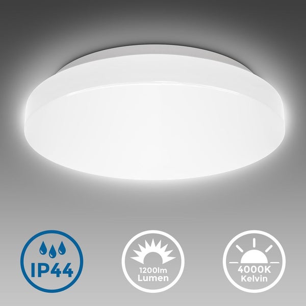 - Technik: Unsere runde Badlampe für die Decke besitzt eine 12W starke LED Lichtquelle. Mit 1200 Lumen strahlt die Badleuchte Ihre Räume flimmerfrei und gleichmäßig aus. Mit 4000 Kelvin gibt die Deckenlampe für das Bad eine helle und neutralweiße Lichtfarbe ab