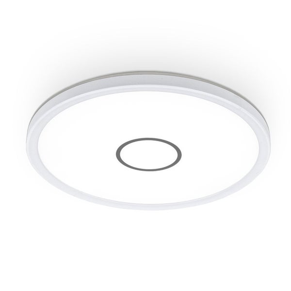 - Die runde, ultraflache LED-Deckenleuchte in Weiß mit silbernem Dekor besitzt die Schutzart IP20 und ist somit geeignet für Ihr Wohnzimmer, Schlafzimmer, Kinderzimmer oder Flur. Durch eine transparente Rückseite gibt die Lampe schönes, indirektes Licht an die Decke ab