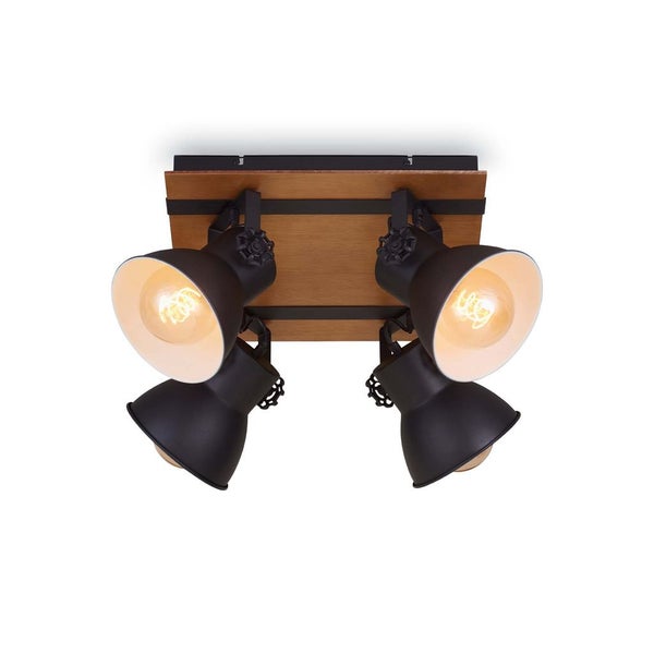 Deckenleuchte Spotleuchte vintage 4xE27 40W Holz Metall Matt Schwarz Briloner