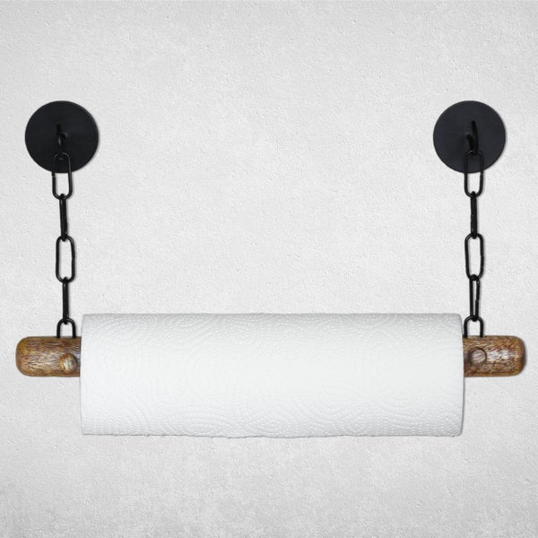 - Im Lieferumfang enthalten1 Mangoholzrolle, 2 Holzstifte, 2 Ketten, 2 Klebehaken