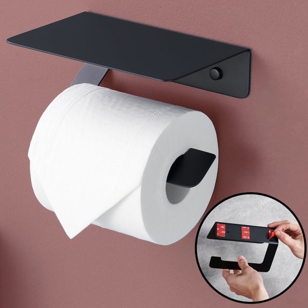 DEKAZIA® Toilettenpapierhalter ohne Bohren schwarz | Klopapierhalter ohne Bohren | Klorollenhalter ohne Bohren Klopapierhalter schwarz Toilettenpapierhalter schwarz matt WC Papier Halterung mit Ablage