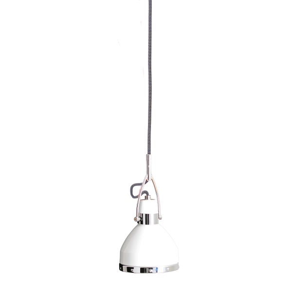 Die COTTAGE Pendelleuchte ist ein Schmuckstück für jeden Wohnraum. Pendelleuchten bieten eine direkte und fokussierte Beleuchtung, die ideal für die Beleuchtung von Esstischen, Kücheninseln, Arbeitsbereichen oder jeden Bereich, der gezieltes Licht benötigt. Sie heben bestimmte Zone optisch hervor und schaffen eine klare Lichtquelle für Tätigkeiten. Eine auffällig Optik und die asymmetrische Gestalt machen diese Lampe im Vintage Style zu einem unverzichtbaren Element für alle, die eine harmonische Einrichtung schätzen. Die Leuchte in weiß ist aus Metall gefertigt und ist ein echter Blickfang in jedem Raum. Die Pendelleuchte misst 22,8 cm in der Länge, 22,8 cm in der Breite/Tiefe und 135 cm in der Höhe. Somit hat die Leuchte einen Durchmesser von 22,8 cm. Die Pendellänge ist 100 cm. Mit 1 mal E27, von Ihnen mit passenden Leuchtmitteln nach Ihren Wünschen zu bestücken, sorgt diese Pendelleuchte für ein einladendes Licht in Ihrem Zuhause. Durch die Möglichkeit, das Leuchtmittel selbst zu wechseln, sind Sie nicht nur flexibel, sondern sparen auch bares Geld. Diese Leuchte entspricht der Klasse 1. Für den Netzbetrieb dieses Geräts wird eine Netzspannung von 220-240V ~ 50Hz benötigt. Mit einer Leistung von 40 Watt ist diese Leuchte besonders leistungsfähig und effizient. Unsere qualitativ hochwertigen Pendelleuchten sorgen für das optimale Lichtambiente und verleihen Ihrem Zuhause Komfort und Stil in jedem Raum.