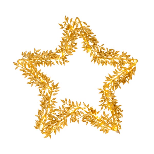 Stimmungsvolle Beleuchtung für die festliche Jahreszeit: Deko-Stern d: 50cm Weihnachtslichter gehören einfach zur festlichen Jahreszeit und schaffen eine unvergleichliche Atmosphäre voller Wärme und Glanz. Mit unseren beleuchteten Weihnachtsartikeln bringen Sie diese Magie direkt in Ihr Zuhause. Ob leuchtende Sterne, funkelnde Kugeln oder strahlende Figuren - jede Dekoration sorgt für ein stimmungsvolles Ambiente und macht Ihr Zuhause zu einem festlichen Blickfang. Lassen Sie sich von der Vielfalt und dem Lichterglanz inspirieren und zaubern Sie unvergessliche Weihnachtsmomente! Deko-Stern d: 50cm im Landhaus Stil - sternförmig und sehr zierlich. Bringen Sie mit dieser Weihnachtsdekoration aus Metall und Kunststoff in Goldfarben im Nu weihnachtliche Atmosphäre in Ihr Zuhause. Die Maße des Artikels belaufen sich auf 50 cm Breite, 50und 50 cm Höhe. Der Weihnachtsartikel ist mit 60 energieeffizienten LED-Leuchtmittel ausgestattet, was eine langlebige und energieeffiziente Beleuchtung garantiet. Mit dem Schiebeschalter können Sie den Artikel schnell und einfach Ein- und Ausschalten. Keine Steckdose in der Nähe? Kein Problem mit diesem batteriebetriebenen Artikel! Die Batterien müssen separat erworben werden. Dieser Weihnachtsartikel mit praktischer Timerfunktion sorgt automatisch für schönes Licht und schaltet sich selbstständig ein und aus - optimal für eine festliche Atmosphäre ohne Aufwand.