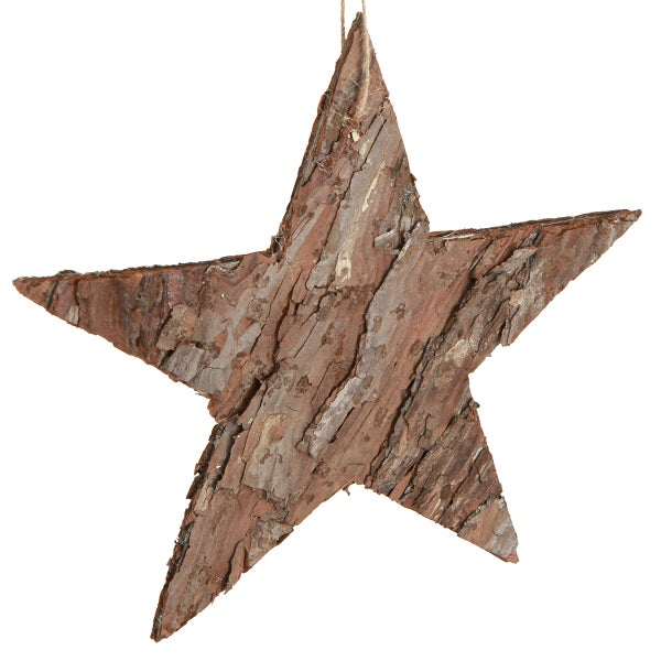 Deko Sterne Pinienrinde 20cm 3er Set Weihnachtsbaumschmuck Rustikal Natur, 3 Stück