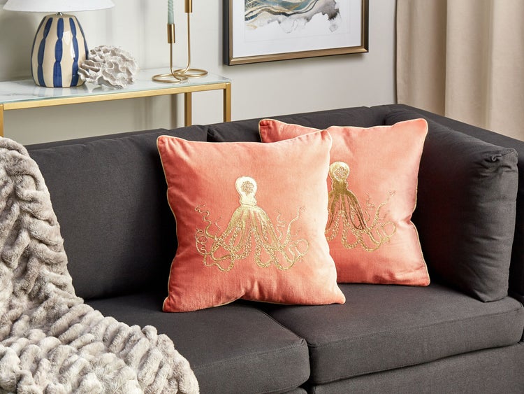 Dekokissen 2er Set LAMINARIA Samtstoff 45 x 45 cm Korallenrot Tiermuster