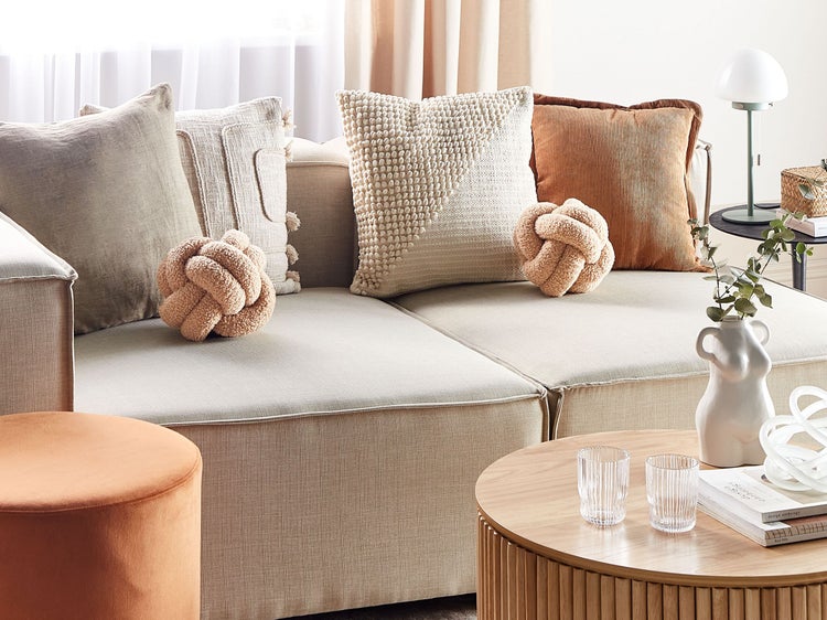 Set mit 2 dekorativen Knoten Ball Kissen. Dieses wunderschöne Knotenset aus 2 Kissen bringt Gemütlichkeit in Ihren Wohnbereich. Sie sind aus weichem Polyester-Boucle-Stoff gefertigt und passen perfekt zu jedem Bett, Stuhl oder Sofa. Diese einzigartige, stilvolle Form in einem klassischen Farbton passt gut zu skandinavischen, Boho oder sogar Retro-Einrichtungen. Details: Typ Dekokissen. Farbe: Beige. Farbton: Hellbeige. Material: Stoff. Material: Bouclé. Füllmaterial: Schaumstoff. Zusammenstellung: 100% Polyester. Form: Unregelmässig. Handgefertigt: Nein. Muster: Ohne Muster. Abmessungen: Tiefe: 19 cm. Breite: 19 cm. Höhe: 19 cm. Füllgewicht: 0.24 kg. Gewicht: 0.4 kg. .Sie kaufen: 2 x Zierkissen. Produktvorteile: Gemütliche Ausstrahlung, Dekorativ und zugleich funktional, Modernes Design, Pflegeleichtes und strapazierfähiges Material, Hohe Qualität, Handgefertigte Präzision. Montage: Benötigt keine Montage. Zusatzinformationen: Der Kissenbezug ist ein wesentlicher Bestandteil des Kissens. Das Kissen ist vakuumverpackt. Nehmen Sie Ihr Kissen aus der Verpackung heraus und lassen Sie es 24 Stunden lang liegen, bis es seine volle Dichte erreicht. Bitte beachten Sie, dass jedes Produkt handgefertigt ist. Abweichungen in Struktur, Farbe oder Form können aufgrund der Eigenschaften der verwendeten Materialien auftreten und stellen keinen Qualitätsmangel dar. Pflegeanleitung: Bouclé: 1.Flecken können mit einem Polsterreiniger, einem angefeuchteten Schwamm oder milden Reinigungsmitteln entfernt werden. 2.Oberflächen nur mit geeignetem Aufsatz vorsichtig absaugen.