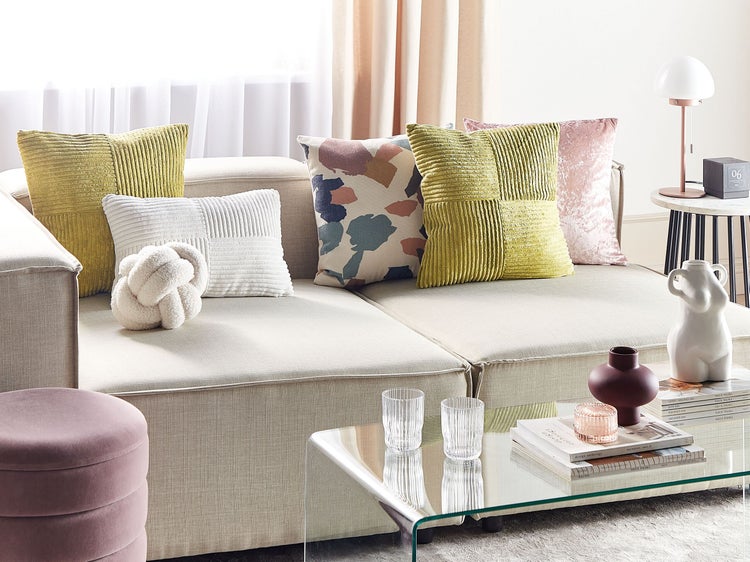 Set dekorativer Streukissen. Mit diesem stilvollen, modernen Kissenset werten Sie Ihren Alltag auf. Sie sind aus Cord gefertigt, sehr strapazierfähig und angenehm zu berühren. Sie sind auch sehr pflegeleicht, da sie mit einem Reißverschluss versehen sind, mit dem Sie den Bezug abnehmen und waschen können. Dank ihres Designs können Sie sie mit einer Vielzahl von Einrichtungsstilen kombinieren, von modern bis Retro oder Boho. Details: Typ Dekokissen. Stil: Retro. Farbe: Grün. Farbton: Olivgrün. Material: Stoff. Material: Cord. Füllmaterial: Polyester. Zusammenstellung: 100% Polyester. Form: Quadratisch. Handgefertigt: Nein. Muster: Geometrisches Muster. Abmessungen: Tiefe: 43 cm. Breite: 43 cm. Höhe: 8 cm. Füllgewicht: 0.4 kg. Gewicht: 1 kg. .Sie kaufen: 2 x Zierkissen. Produktvorteile: Abnehmbarer Bezug, Herrlich weich, Ein einzigartiger Hingucker, Hohe Qualität. Montage: Benötigt keine Montage. Zusatzinformationen: Das Kissen ist vakuumverpackt. Nehmen Sie Ihr Kissen aus der Verpackung heraus und lassen Sie es 24 Stunden lang liegen, bis es seine volle Dichte erreicht. Pflegeanleitung: Cord: 1.Nur von Hand, mit kaltem Wasser und milden Reinigungsmitteln waschen. 2.Bitte nicht im Trockner trocknen und auch nicht bügeln.