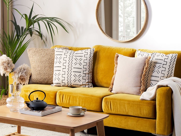 Modern bedruckte Kissen im Boho-Stil. Verschönern Sie Ihr Sofa und frischen Sie es mit neuen Dekokissen auf. Dieses aus hochwertiger Baumwolle gefertigte Kissenset mit geometrischem Muster wird ein eleganter und einzigartiger Eyecatcher in Ihrem Zuhause sein. Dank der natürlichen Farbe können Sie die Zierkissen sowohl mit Möbeln in lebendigen Farben als auch in Pastelltönen kombinieren. Details: Typ Dekokissen. Farbe: Weiß. Farbton: Cremeweiß. Material: Stoff. Material: Baumwolle. Füllmaterial: Polyester. Zusammenstellung: 100% Baumwolle. Form: Quadratisch. Handgefertigt: Ja. Muster: Geometrisches Muster. Abmessungen: Tiefe: 45 cm. Breite: 45 cm. Höhe: 10 cm. Füllgewicht: 0.5 kg. Gewicht: 0.6 kg. .Sie kaufen: 2 x Zierkissen. Produktvorteile: Abnehmbarer Bezug, Handgefertigtes Blockdruckmuster, Dekorativ und zugleich funktional, Wunderbar geeignet für Schlaf- und Wohnbereich, Erzeugt Wohlfühlcharakter in jedem Raum, Hohe Qualität. Montage: Benötigt keine Montage. Zusatzinformationen: Das Kissen ist vakuumverpackt. Nehmen Sie Ihr Kissen aus der Verpackung heraus und lassen Sie es 24 Stunden lang liegen, bis es seine volle Dichte erreicht. Bitte beachten Sie, dass jedes Modell leicht von dem im Bild dargestellten abweichen kann. Die Anordnung der Farben und Muster kann unterschiedlich ausfallen und wird nicht als Produktfehler, sondern als Merkmal betrachtet Pflegeanleitung: Baumwolle: 1.Von Hand oder mit einem Feinwäsche-Programm bei max. 30°C waschen, wenn auf dem Etikett keine weiteren Hinweise des Herstellers gegeben sind. 2.Wenn auf dem Etikett nicht anders angegeben, bitte nicht im Trockner trocknen und auch nicht bügeln.